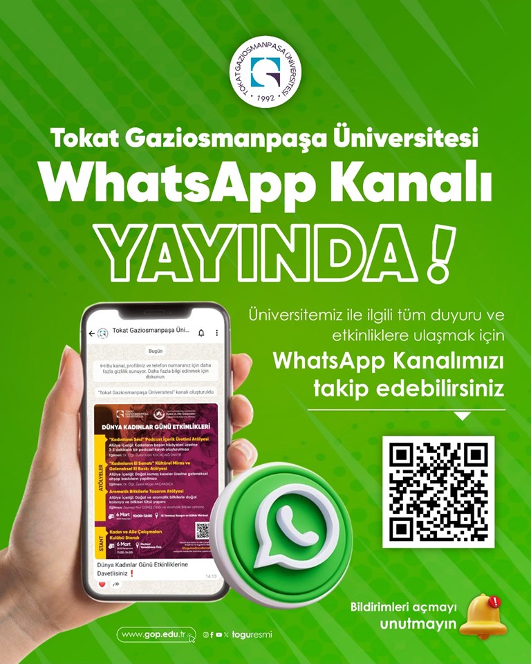 Tokat Gaziosmanpaşa Üniversitesi Resmî WhatsApp Kanalı Yayında
