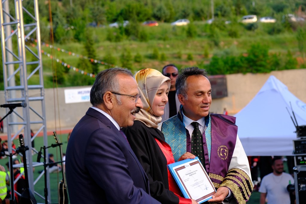 Üniversitemiz Lisans Birincisi İslami İlimler Fakültesi öğrencisi Elif Arslan ise şu ifadeleri kullandı: “Üniversite hayatımız boyunca sadece dersler değil, hayatın kendisi de bize çok şey öğretti. Burada öğrendiğimiz ilim, ahlak ve sorumluluk duygusunu hayatımız boyunca taşımaya gayret edeceğiz. Bugün burada olmak benim için büyük bir gurur ve aynı zamanda büyük bir sorumluluk. Bu başarı yalnızca bana ait değil; aileme, hocalarıma ve tüm arkadaşlarıma teşekkür ediyorum. Mezun olan tüm arkadaşlarıma başarı ve huzur dolu bir gelecek diliyorum.”