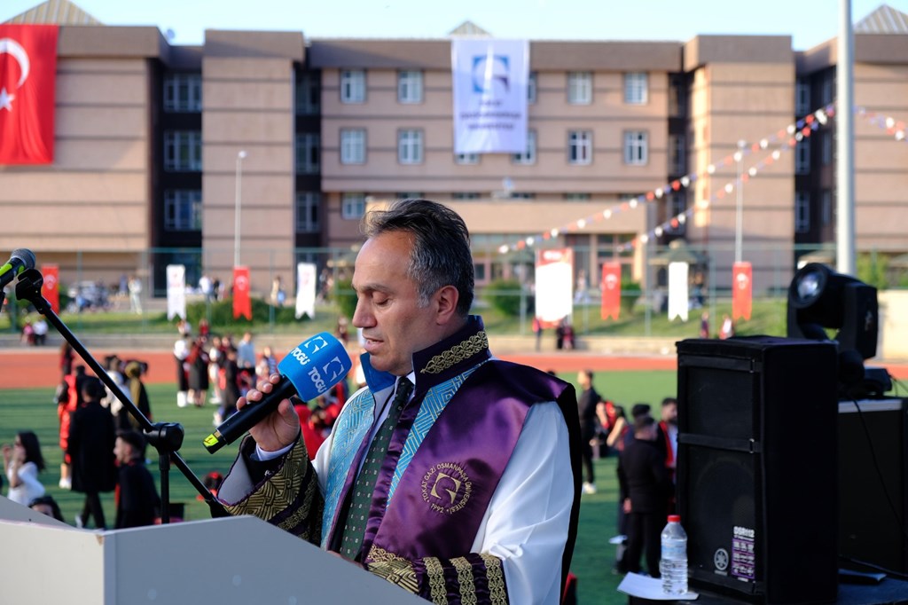Törende konuşan Rektörümüz Prof. Dr. Fatih Yılmaz, hem üniversitenin geldiği noktayı hem de mezunlara ve ailelerine yönelik duygu yüklü mesajlarıyla dikkat çekti.