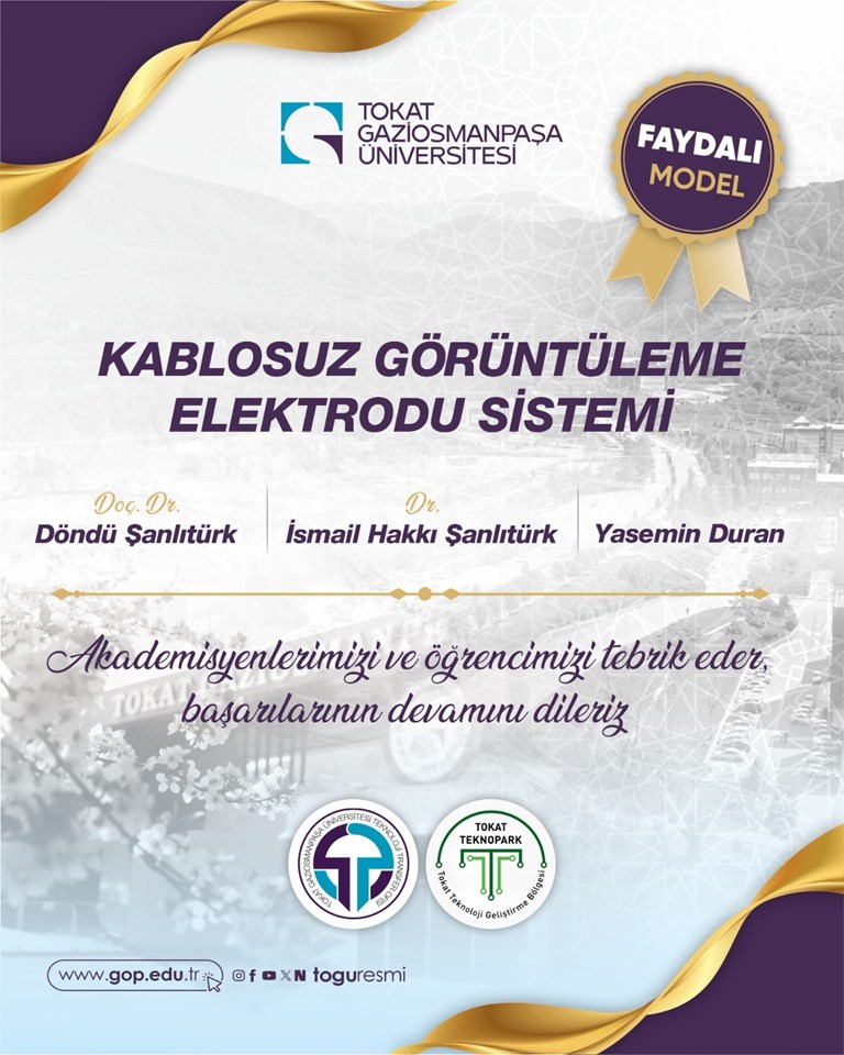 Faydalı Model başvurusu tescillenen “Kablosuz Görüntüleme Elektrodu Sistemi” başlıklı buluşun sahipleri, Doç. Dr. Döndü Şanlıtürk, Dr. İsmail Hakkı Şanlıtürk ve Yasemin Duran’ı tebrik ederiz.