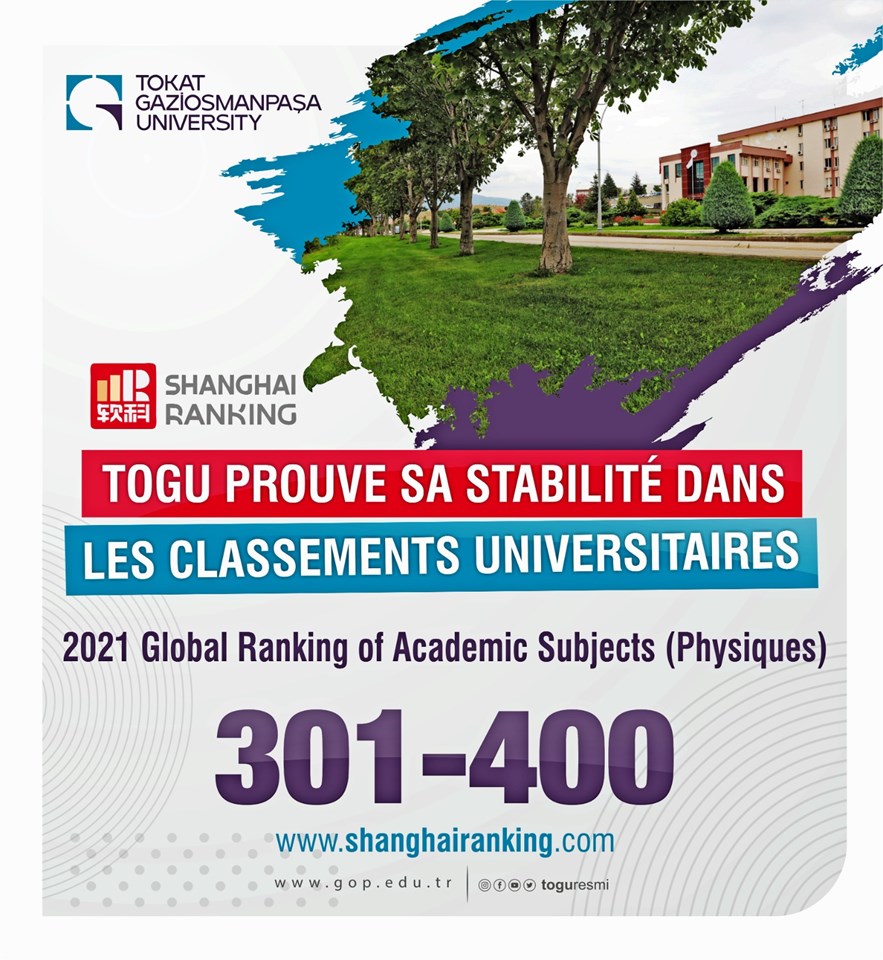 In the Shanghai Ranking 2021 Field Based World Ranking, one of the most prestigious university rankings in the world, our university remained among the world's leading universities in this field by taking part in the 301-400 band in physics. Our University has achieved 5 consecutive years in physics in the GRAS (Global Ranking of Academic Subjects) ranking, which evaluates more than 4000 higher education institutions and research centers from 93 countries. GRAS 2021 results were evaluated based on indicators such as research outcomes, research impact, international cooperation, research quality, and Academic Excellence Survey. We congratulate our colleagues who contributed to this success.