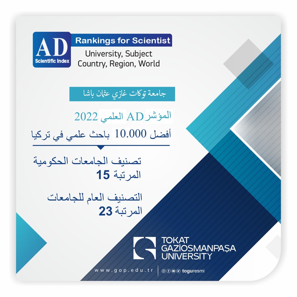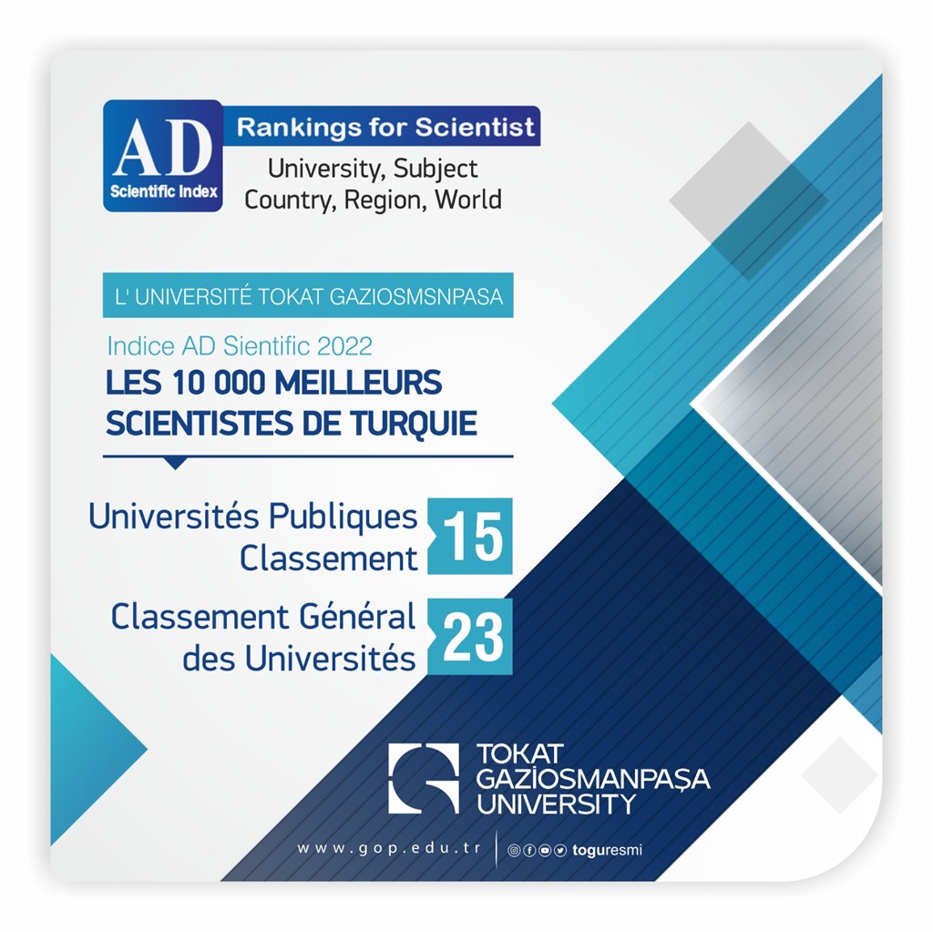 According to the results of the AD Scientific Index 2022 Scientist and University Ranking, which ranks thousands of scientists from all over the world in terms of their publication performance (h-index / i10 index and scores) and productivity in the last five years, TOGU ranks 15th among state universities in Turkey, and 352nd in regional rankings. and achieved another great success by being ranked 1092nd in the world. 53 faculty members of our university are among the "Best 10,000 researchers". The number of our faculty members in this ranking ensured our university’s high quality.