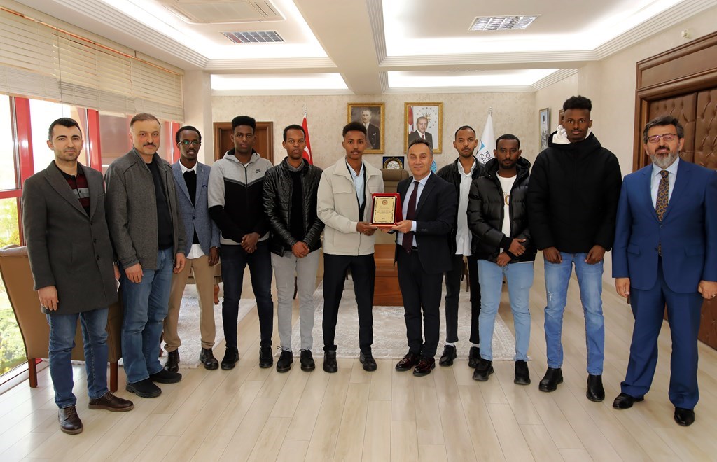 Somali Republic citizens studying at our university visited our Rector Prof. Dr. Fatih YILMAZ. International Relations Coordinator Asst. Prof. Dr. Şahin SÖZEN, International Relations Vice Coordinator Asst. Prof. Dr. Melih TAŞTAN and Sen. Lec. Gökhan GÜNEY were participated the meeting. Somalian students expressed their satisfaction with being in Tokat and our University and thanked our Rector for his support. Our Rector Prof. Dr. Fatih YILMAZ also thanked the students for their kind visiting.