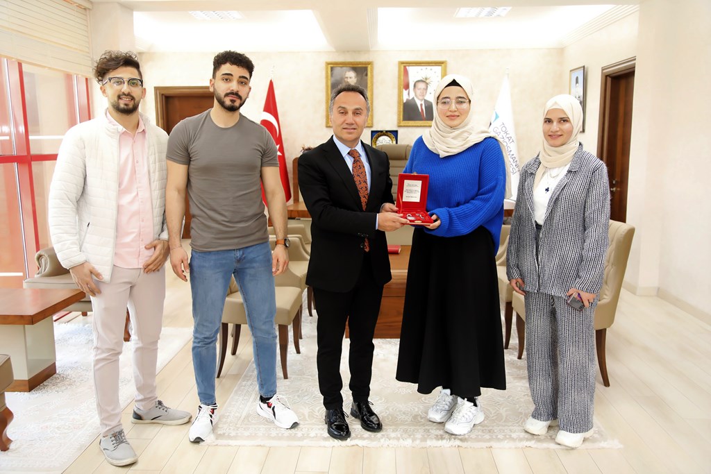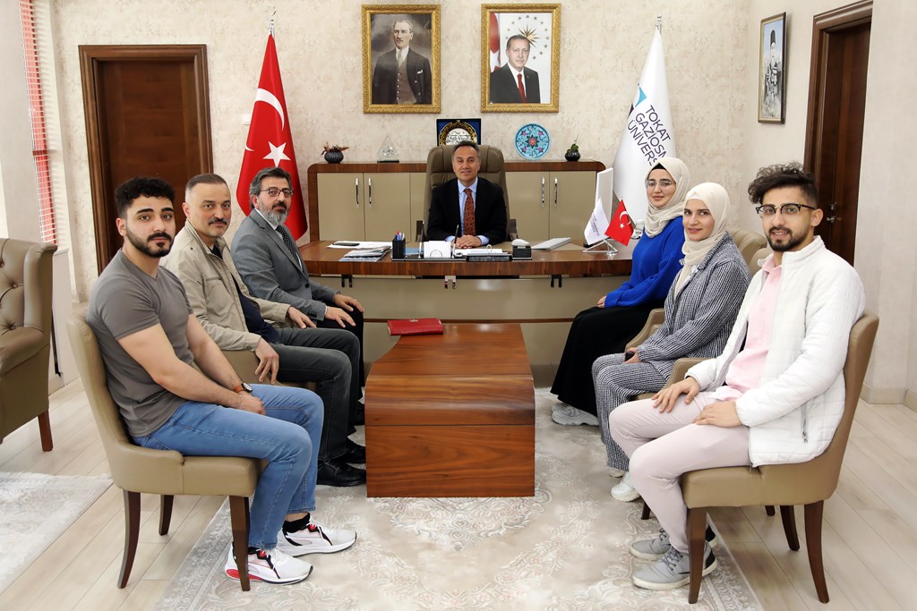 Our Syrian students visited our Rector Prof. Dr. Fatih Yılmaz. International Relations Coordinator Asst. Prof. Dr. Şahin Sözen and Vice Coordinator Asst. Prof. Dr. Melih Taştan attented to the visiting. Representative of Syrian Students Ayal Khirallah and accompanying students expressed their satisfaction with being in Tokat and our University. They thanked our Rector for their support, Our Rector Prof. Dr. Fatih YILMAZ also thanked the students for their kind visiting.