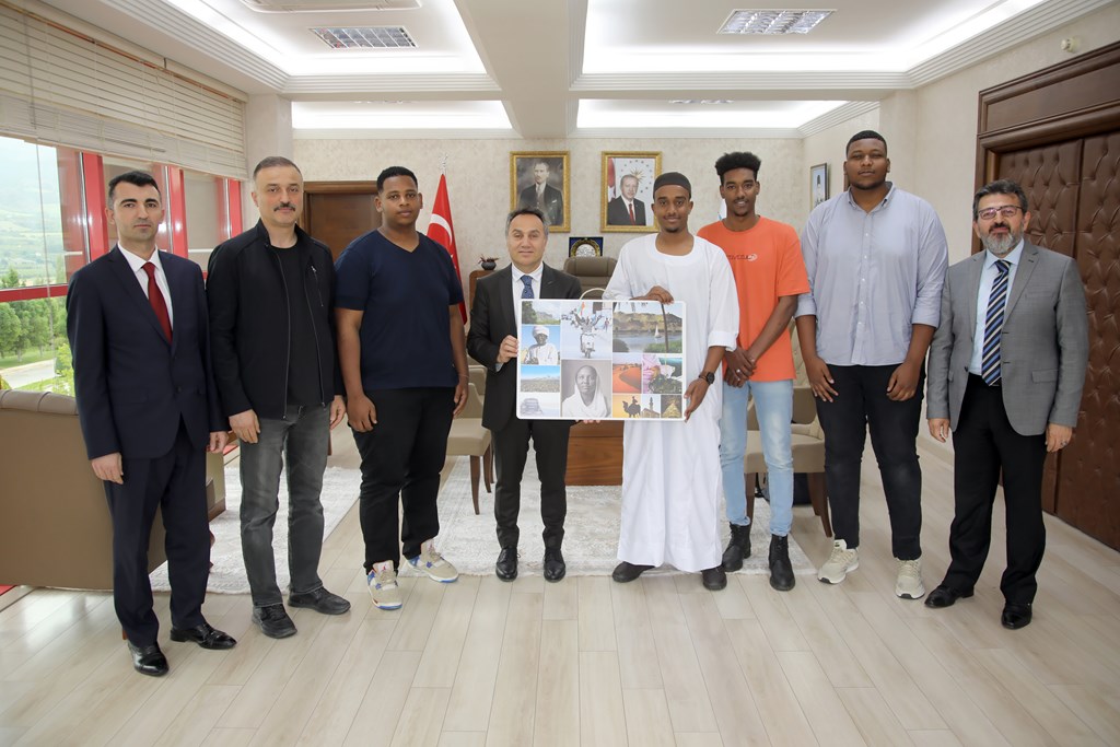 Sudanese students at our university visited our Rector Prof. Dr. Fatih YILMAZ. During the visiting at the Rectorate, Representative of Sudanese Students Muhammed Abdulmelik WADİDİ thanked our Rector for his support and presented a gift. Our Rector Prof. Dr. Fatih Yılmaz thanked our students for their visiting and wished them success in their education life. International Relations Office Coordinator Asst. Prof. Dr. Şahin SÖZEN, Vice-Coordinator Asst. Prof. Dr. Melih TAŞTAN and Sen. Lec. Gökhan GÜNEY participated to the visiting.