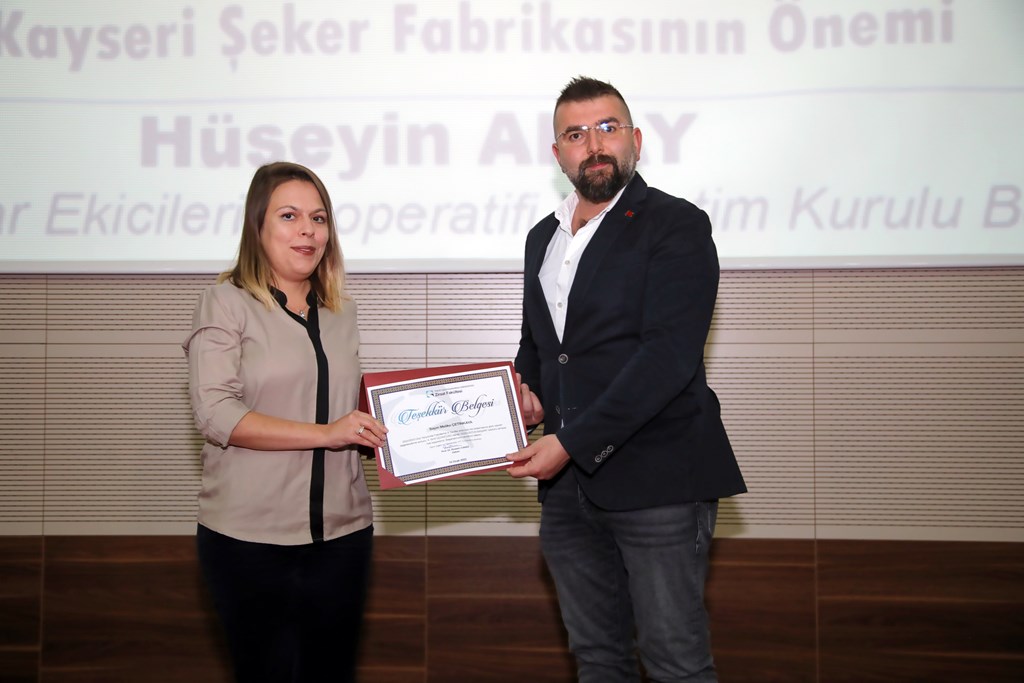 Programda Kayseri Pancar Ekicileri Kooperatifi Yönetim Kurulu Başkanı Hüseyin Akay “Türkiye’nin Tarım Politikalarında Şekerin Yeri ve Kayseri Şeker Fabrikasının Önemi” konulu konferansını gerçekleştirdi. Akay, dinleyicilerden gelen soruları da cevaplandırarak konferansını sonlandırdı.