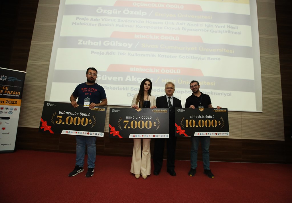 Biyoteknoloji ve Sağlık Bilimleri alanında uzman kategorisinde Birincilik ödülünü Hitit Üniversitesinden Güven AKÇAY, İkincilik ödülünü Sivas Cumhuriyet Üniversitesinden Zuhal GÜLSOY, Üçüncülük ödülünü ise Erciyes Üniversitesinden Özgür ÖZALP kazandı. Kazanan araştırmacıların ödüllerini Rektör Yardımcımız Prof. Dr. Mücahit EĞRİ takdim etti.