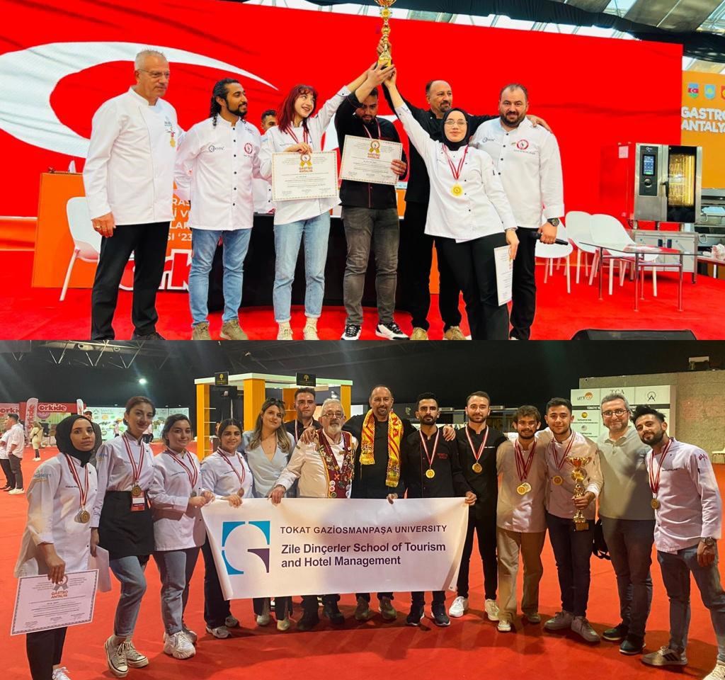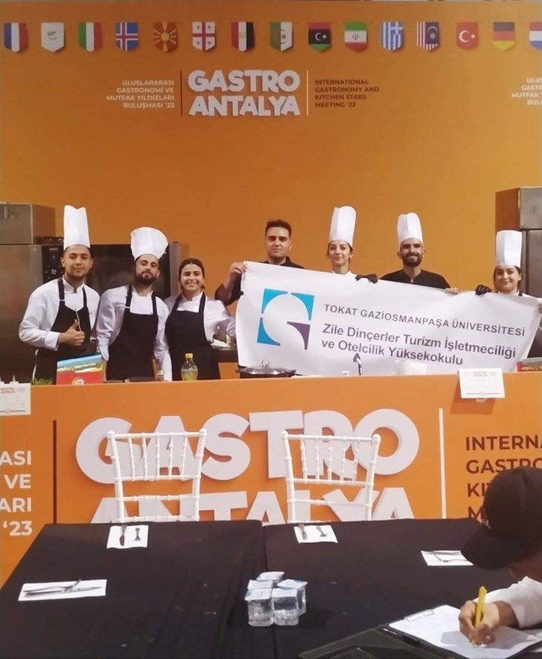 15-18 Kasım tarihleri arasında Akdeniz Şefler Kulübü Derneği (ASKDER) tarafından Antalya’da düzenlenen Türkiye’nin en kapsamlı yemek yarışması GASTRO ANTALYA 2023’te TOGÜ Zile Dinçerler Turizm İşletmeciliği ve Otelcilik Yüksekokulu Gastronomi ve Mutfak Sanatları Bölümü öğrencilerimiz katılım sağladı. Organizasyon boyunca oldukça başarılı bir performans sergileyen TOGÜ ögrencileri, çeşitli kategorilerde toplamda 2 Kupa, 15 Altın, 6 Gümüş ve 2 Bronz madalya kazanarak en iyi üniversitlerden birisi oldu. Yarışmada, Michelin Yıldızlı şefler, zincir otellerin executive şefleri ve uluslararası ödüllere sahip toplam 162 şef jüri üyesi olarak görev yapmıştır. Yemek yarışmasına 43 farklı ülkeden yaklaşık 800 yarışmacı katılmıştır. Türkiye’den ve yurtdışından 21 üniversite de yarışmaya katılım sağlamıştır.