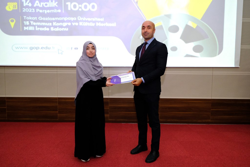 Üniversitemiz Eğitim Fakültesi ve Kalite Kulübü tarafından düzenlenen “Eğitime İlişkin Kısa Filmim Var” yarışmasının ödül töreni gerçekleştirildi. 15 Temmuz Kongre ve Kültür Merkezi Milli İrade Salonunda düzenlenen programa Rektörümüz Prof. Dr. Fatih YILMAZ, Rektör yardımcılarımız Prof. Dr. Mücahit EĞRİ, Prof. Dr. Rasim KOÇYİĞİT, Eğitim Fakültesi Dekanı Prof. Dr. Erdal ŞENOCAK, Sanatçı Hasan KAÇAN, Tokat İl Milli Eğitim Müdürü Hüseyin KIR, Tokat İl Kültür ve Turizm Müdürü Abdi DÖLEK, personelimiz ve öğrenciler katıldı.