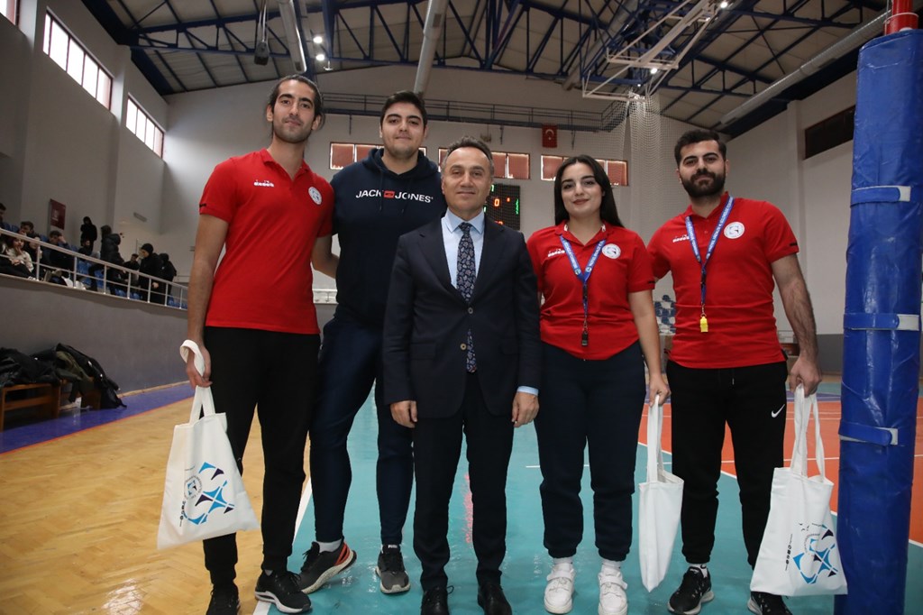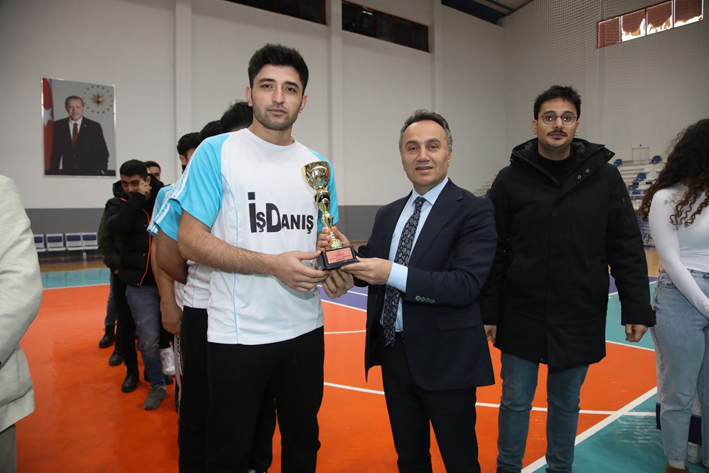 Cumhuriyetimizin 100’üncü yılı dolayısıyla düzenlenen Öğrenci Voleybol Turnuvası bugün yapılan final maçı ile tamamlandı. Rektörümüz Prof. Dr. Fatih YILMAZ, düzenlenen ödül törenine katılarak kazanan takımlara ödüllerini takdim etti.