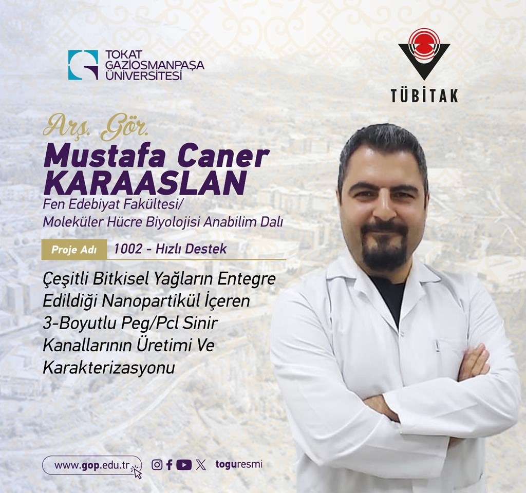 TUBİTAK-1002 Hızlı Destek Programı kapsamında projesi desteklenen Fen-Edebiyat Fakültesi öğretim elemanımız Arş Gör. Mustafa Caner Karaaslan'ı Kutlarız