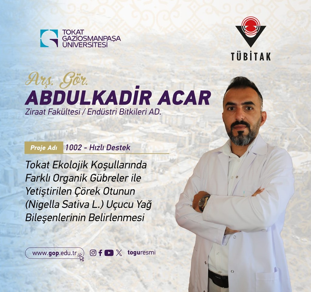 Ziraat Fakültemiz Arş. Gör. Abdulkadir Acar'ı desteklenmeye hak kazanan projesi dolayısıyla kutlar, başarılar dileriz