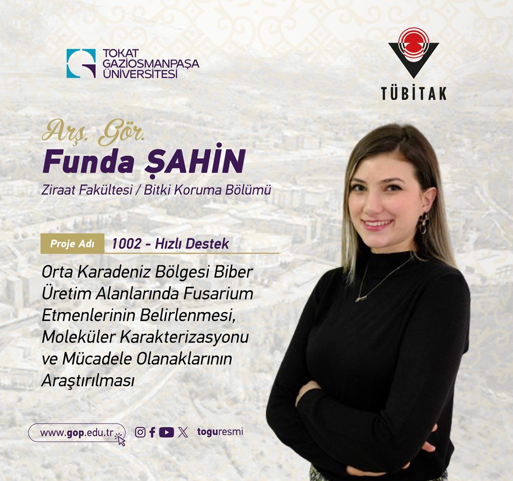 TUBİTAK-1002 Hızlı Destek programı kapsamında projesi desteklenen Ziraat Fakültemiz öğretim elemanı Arş.Gör. Funda Şahin’i Kutlarız