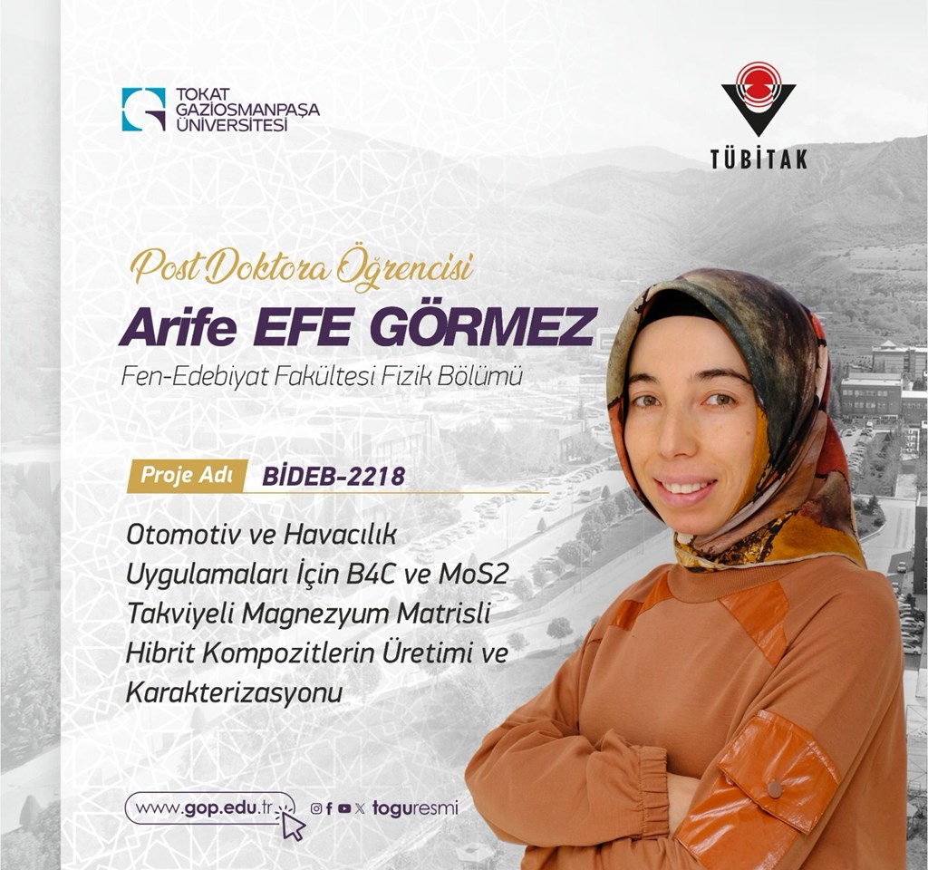 TUBİTAK BİDEB-2218 programı kapsamında projesi desteklenen Post-Doktora öğrencimiz Arife Efe Görmez’i kutlarız