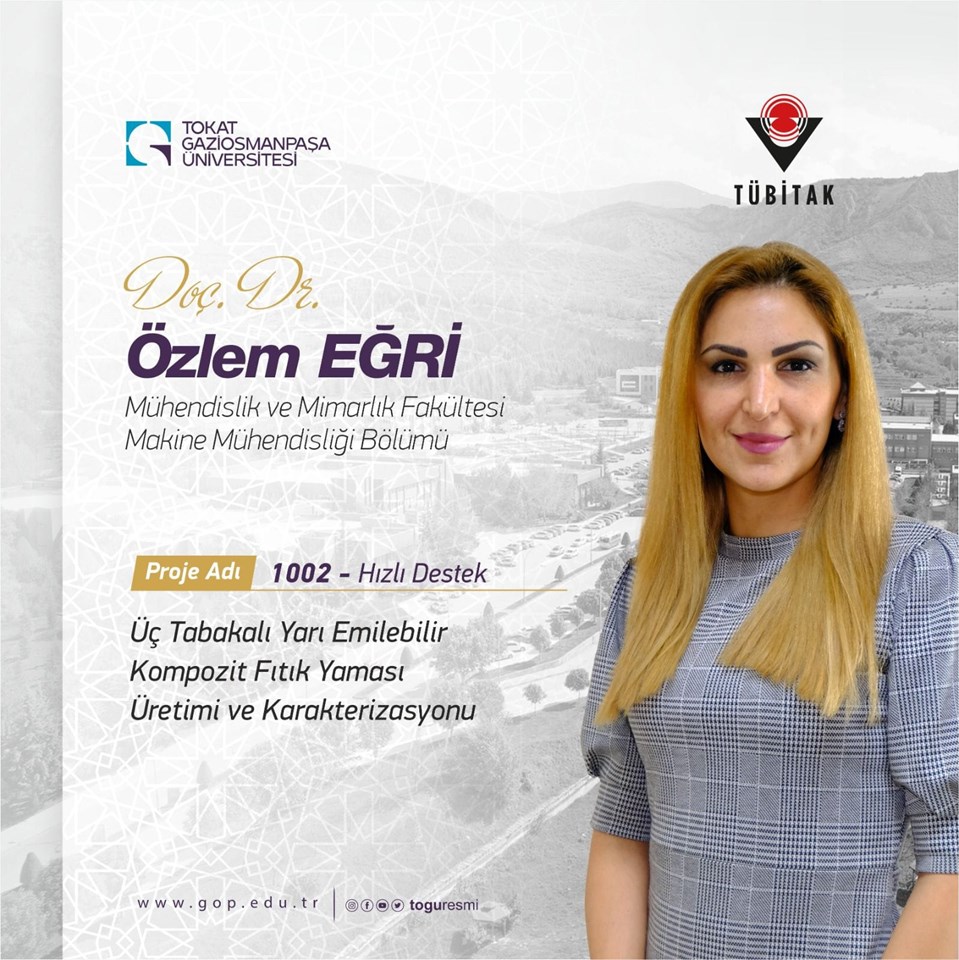 TUBİTAK- 1002 Hızlı Destek kapsamında projesi desteklenen Üniversitemiz Makine Mühendisliği Bölümü öğretim üyelerinden Doç. Dr. Özlem Eğri'yi kutlarız