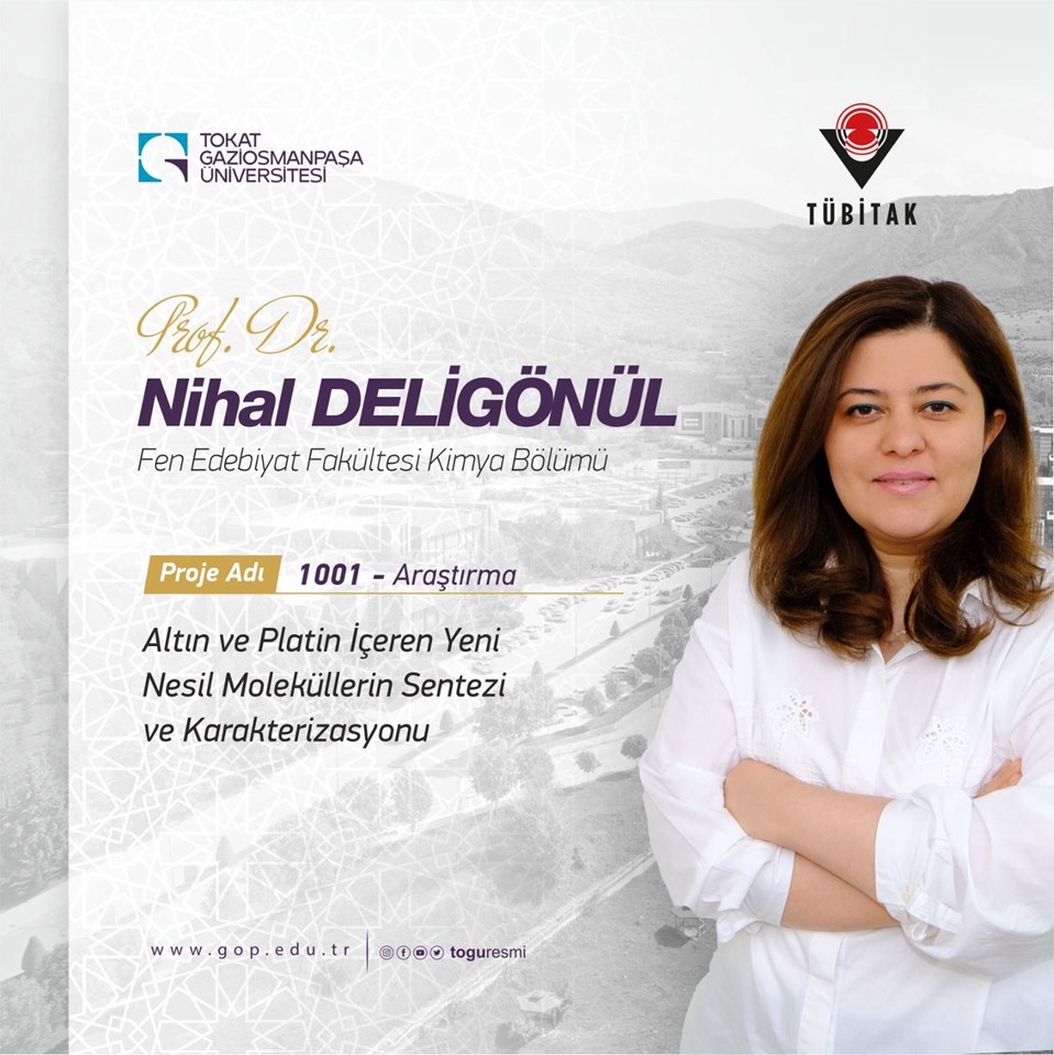 TUBİTAK 1001 Araştırma Programı kapsamında projesi desteklenen Kimya Bölümümüz öğretim üyesi Prof. Dr. Nihal Deligönül'ü kutlarız