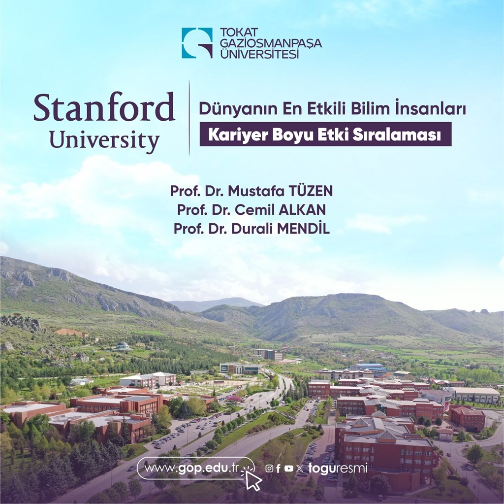 Stanford Üniversitesince hazırlanan “Dünyanın En Etkili Bilim İnsanları Kariyer Boyu Etki Sıralaması Listesi”ne Üniversitemizden 3 bilim insanı girdi. Listede yer alan bilim insanlarımızı tebrik eder, başarılarının devamını dileriz.