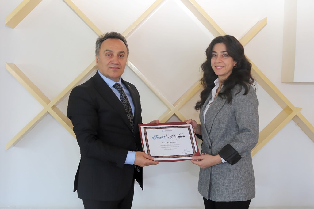 Rektörümüz Prof. Dr. Fatih Yılmaz, Kurumsal Akreditasyon Programı (KAP) sürecine katkı sunan personelimizle yemekte bir araya geldi. Üniversitemiz Sosyal Tesislerde gerçekleşen ve Rektör Yardımcılarımız, Rektör Danışmanlarımız ve Genel Sekreterimizin hazır bulunduğu etkinlikte Kalite Koordinatörümüz Prof. Dr. Uğur Akın, Koordinatör Yardımcıları Doç. Dr. Seda Demir Ayçiçek ve Doç. Dr. Emel Tüzel İşeri, Koordinatörlük personeli Öğretim Görevlileri Üzeyir Emrah İlter, Murat Topaloğlu ile Gökçe Armağan yer aldı. Rektörümüz Prof. Dr. Fatih Yılmaz, Yükseköğretim Kalite Kurulu (YÖKAK) tarafından yürütülen Kurumsal Akreditasyon Programı sürecinde görev alan ve sürece katkı sunan personelimize teşekkür ederek belge takdiminde bulundu.