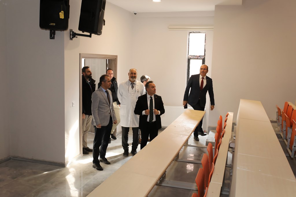 Rektörümüz Prof. Dr. Fatih Yılmaz, Üniversitemiz Ali Şevki Erek Yerleşkesinde bulunan Tıp Fakültemizin, inşaatı devam eden yeni binasında incelemelerde bulundu. Tıp Fakültesi Dekanı Prof. Dr. Raşit Kılıç, Üniversite Hastanesi Başhekimi Prof. Dr. Erkan Gökçe katıldı. Rektörümüz Prof. Dr. Fatih Yılmaz inşaatın en kısa sürede biteceğini ve faaliyete geçeceği müjdesini verdi.