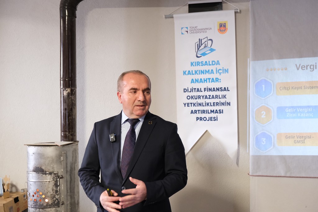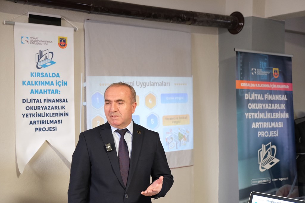 Üniversitemiz tarafından yürütülen “Kırsalda Kalkınma İçin Anahtar: Dijital Finansal Okuryazarlık Yetkinliklerinin Artırılması” projesi kapsamında planlanan eğitimler Tokat’ın ilçelerinde eş zamanlı yapılmaya devam ediyor. Eğitime Rektör Yardımcımız Prof. Dr. Yusuf Temür, Proje Yürütücüsü Prof. Dr. Mihriban Coşkun Arslan, İl Jandarma Komutan Yardımcısı Jandarma Albay Ali İhsan Kurtulan, akademik personelimiz ve vatandaşlar katıldı.