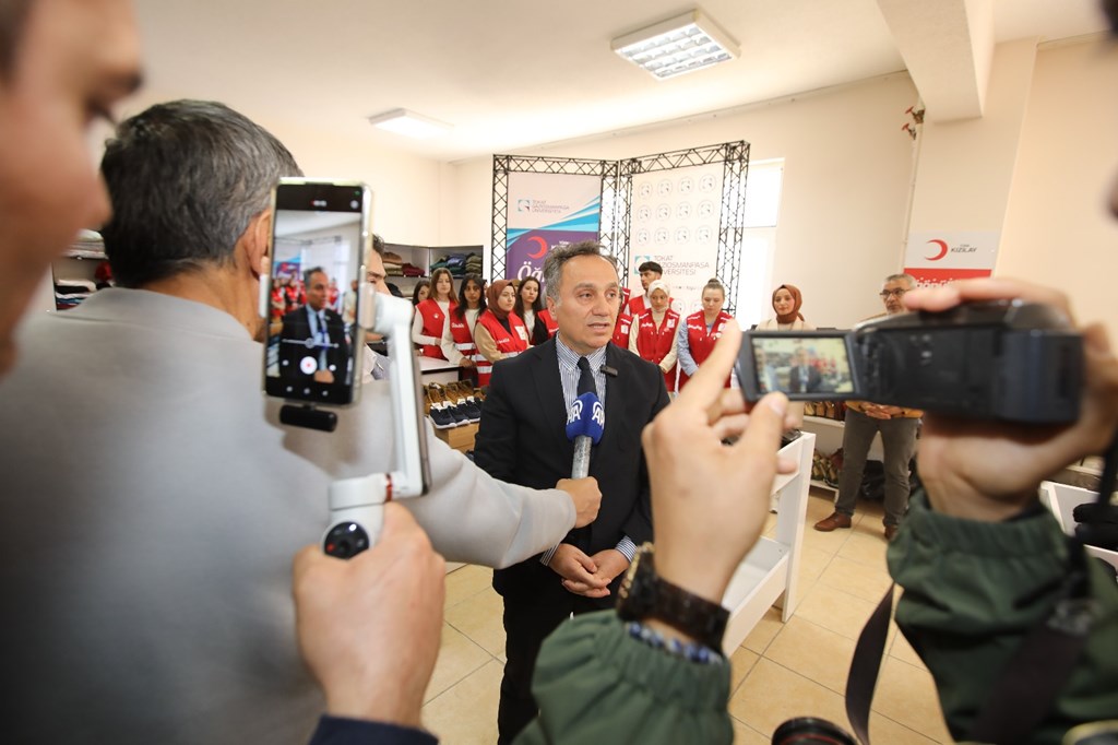 Rektörümüz Prof. Dr. Fatih Yılmaz yaptığı konuşmada, “Öğrencilerimizin sosyal ve ekonomik ihtiyaçlarını gözeten projeler üretmeye ve hayata geçirmeye devam ediyoruz. Bu kapsamda, Türk Kızılayı Tokat İl Şubesi ile iş birliği yaparak kampüsümüzde hizmet veren Öğrenci Butiğimizi yenileyerek öğrencilerimize daha etkin bir destek sunmanın mutluluğunu yaşıyoruz. Butiğimizin mevcut alanı, üniversitemiz tarafından kapsamlı bir şekilde yeniden düzenlenmiş; tabela, cam giydirmeleri ve yeni reyonlarla daha modern ve kullanışlı hale getirilmiştir. Ayrıca, Kızılay tarafından bağışlanan yeni ve kullanılmamış kız ve erkek kıyafetleri ile ayakkabılar öğrencilerimizin hizmetine sunulmuştur” dedi.