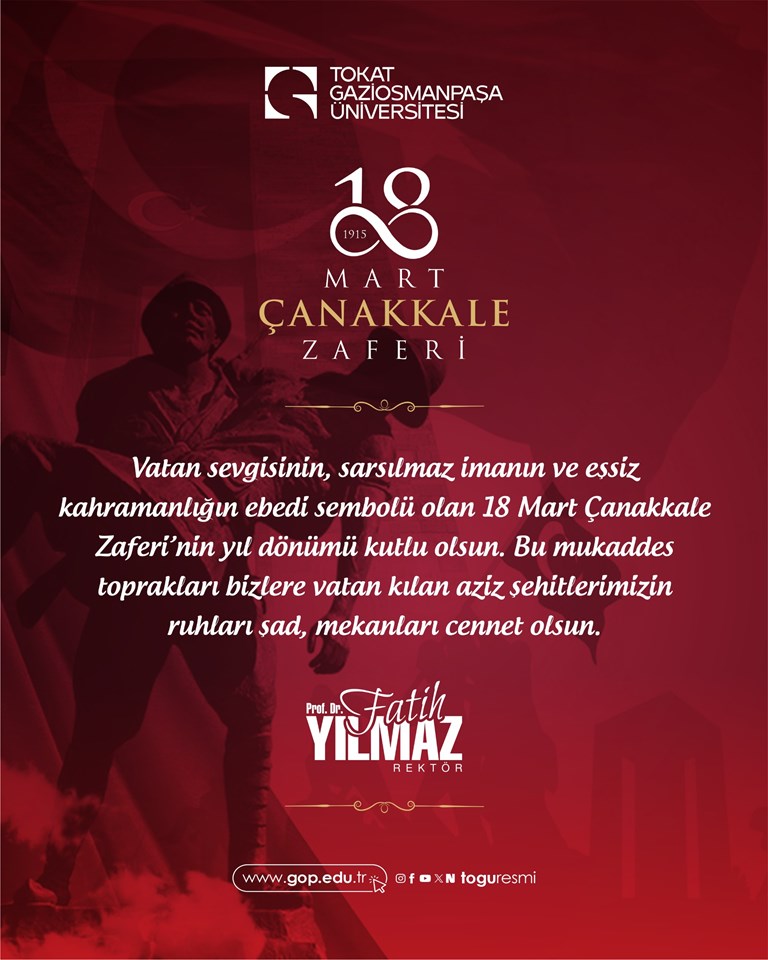 Rektörümüzün 18 Mart Çanakkale Zaferi ve Şehitleri Anma Günü Mesajı